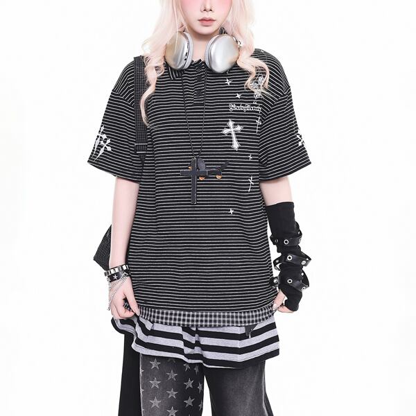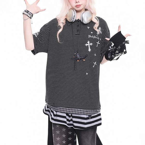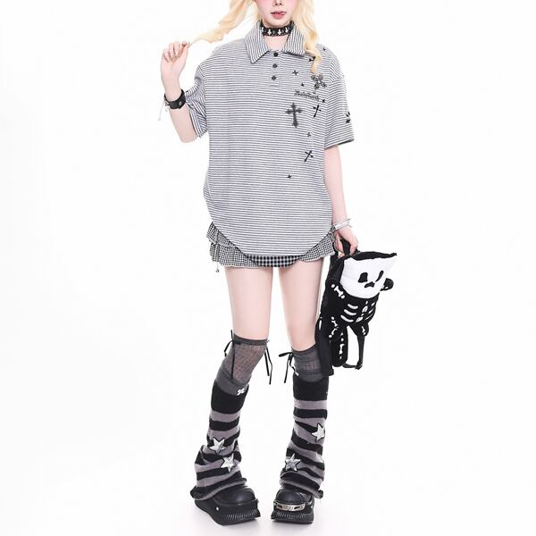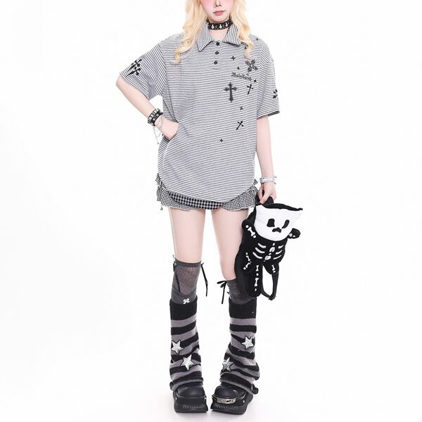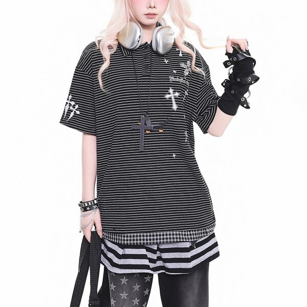 クロスプリント ボーダーポロTシャツ(2パターンあり)(lli_6851)