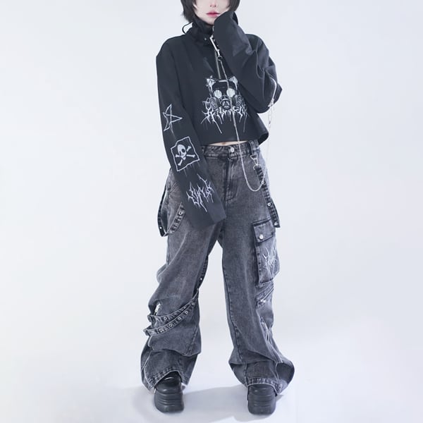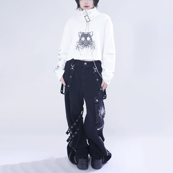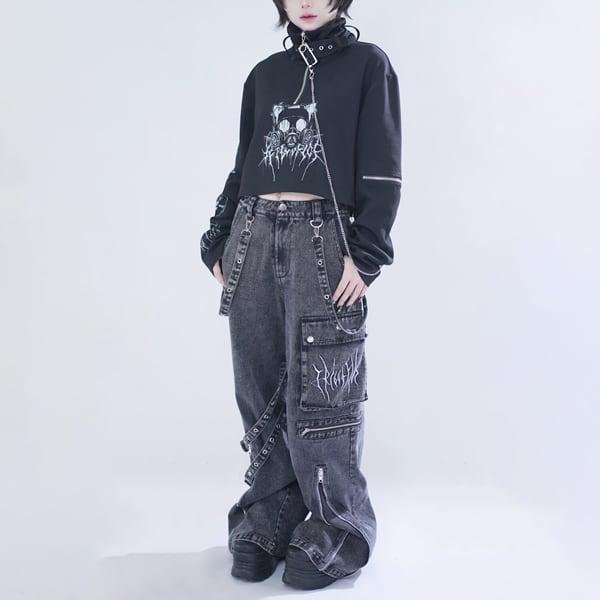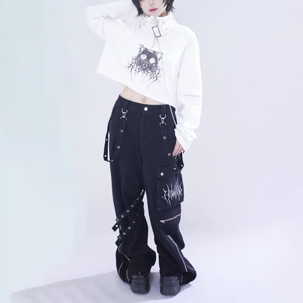 ▼グレーパンツ(グレーストラップデザイン ダークワイドデニムパンツ(lli_6874))は以下からご覧ください▼