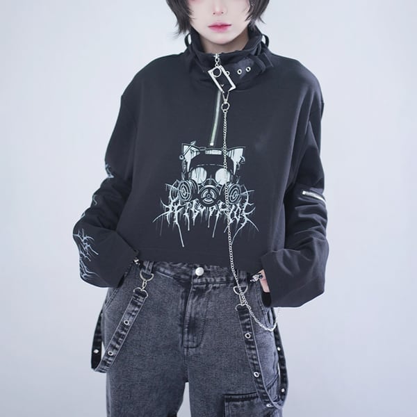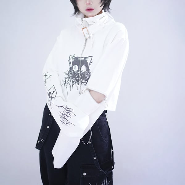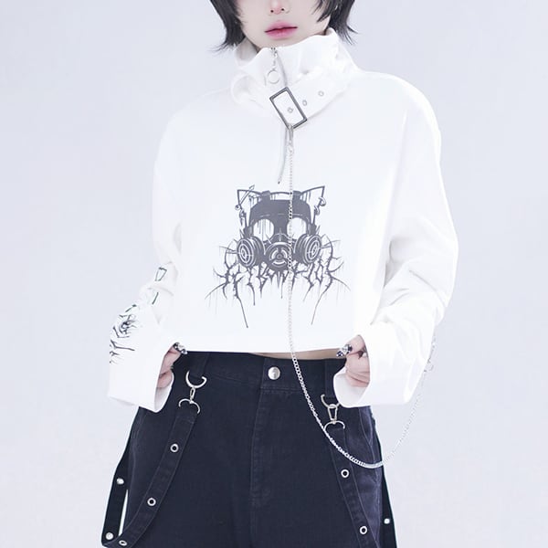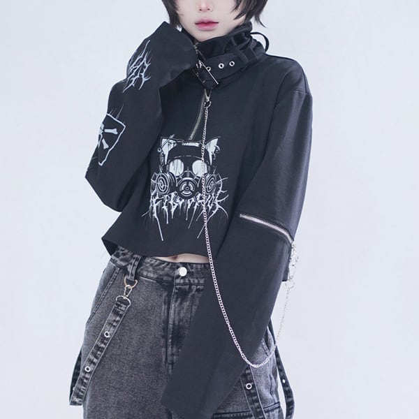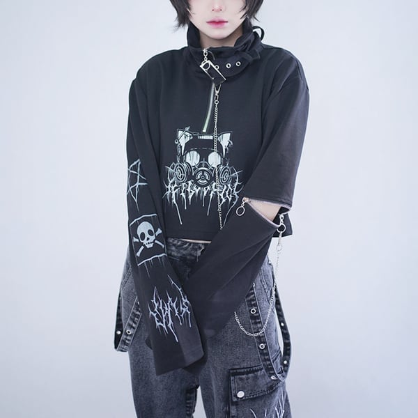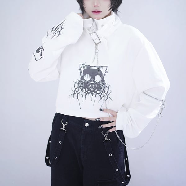 ネックベルト×チェーンデザイン クロップドトップス(2カラーあり)(lli_6854)