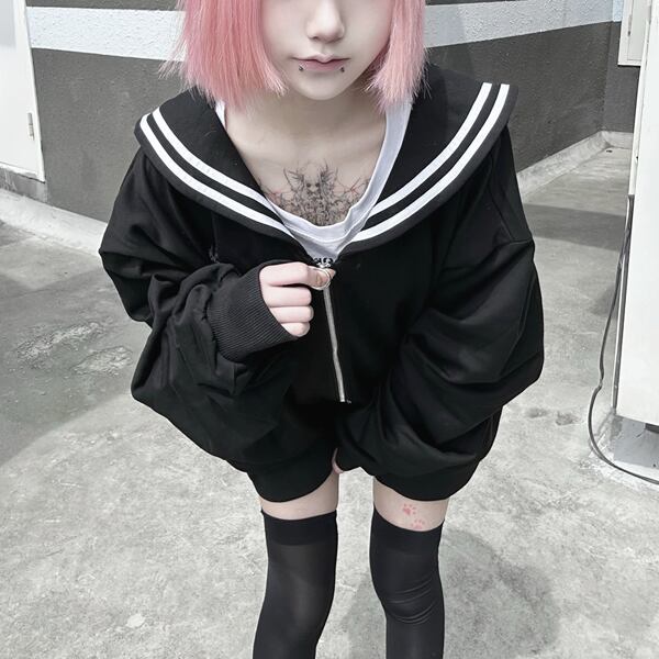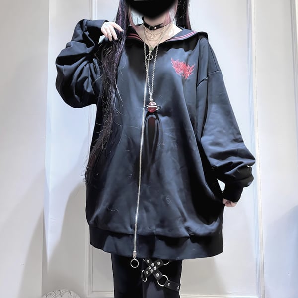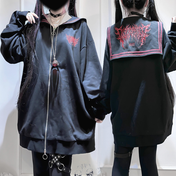 メタルロゴ セーラーカラージップパーカー(2タイプあり)(lli_6859)