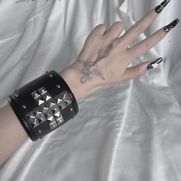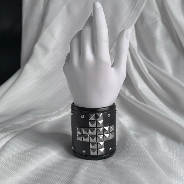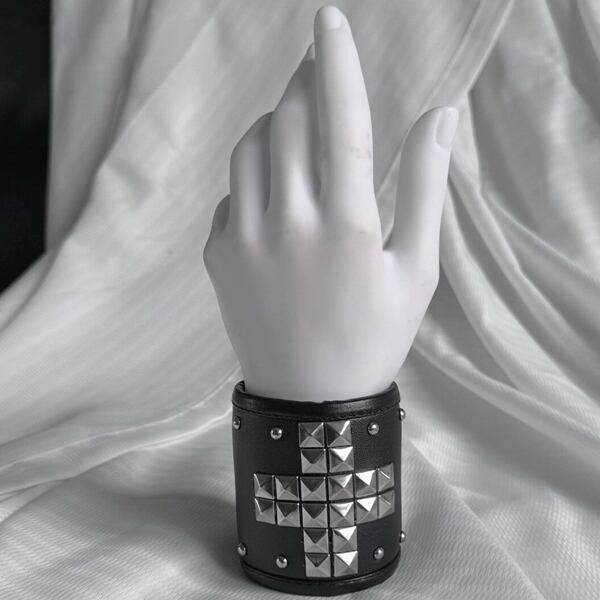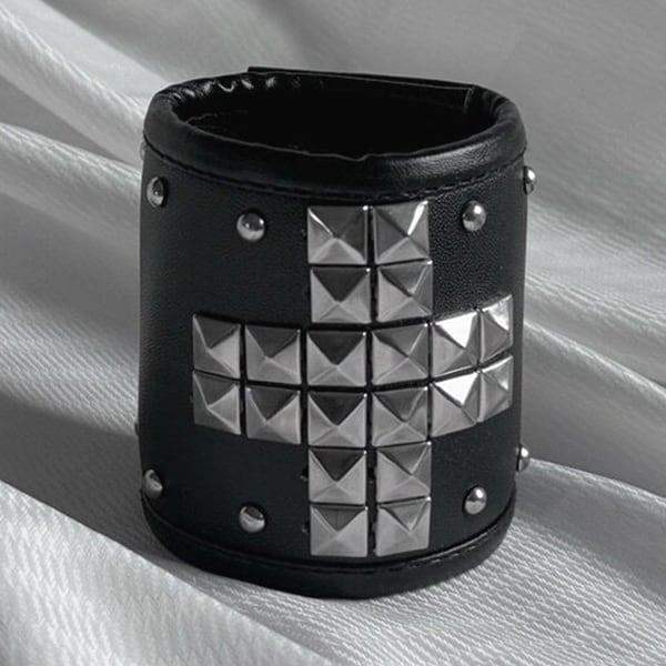 スタッズクロス ワイドレザーブレスレット(lli_6860)