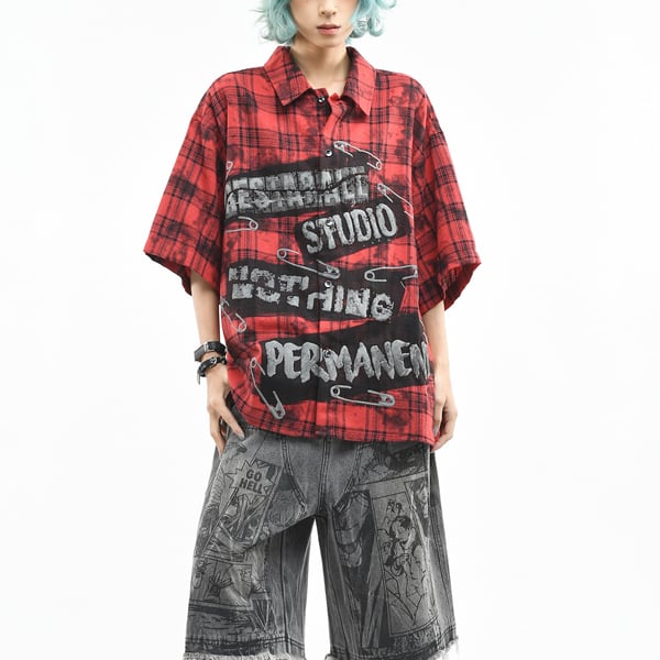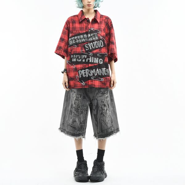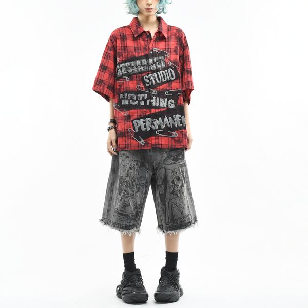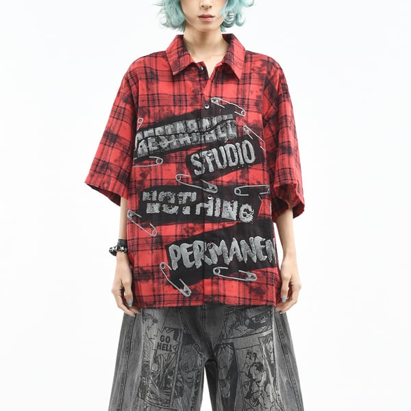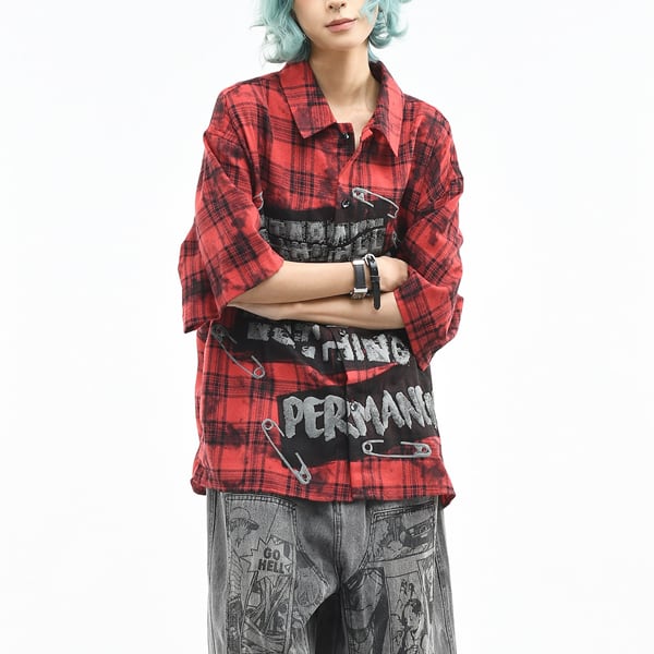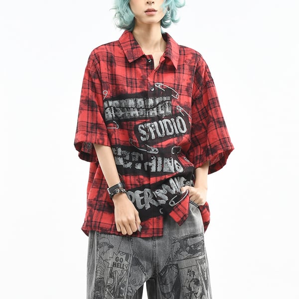 安ピングランジグラフィックチェックシャツ(lli_6863)