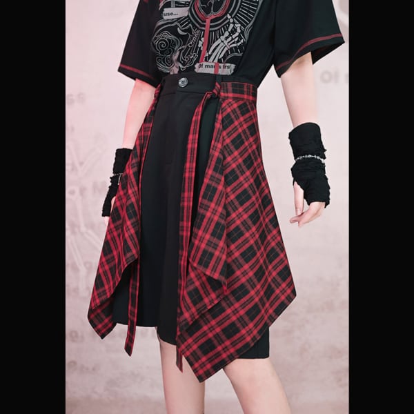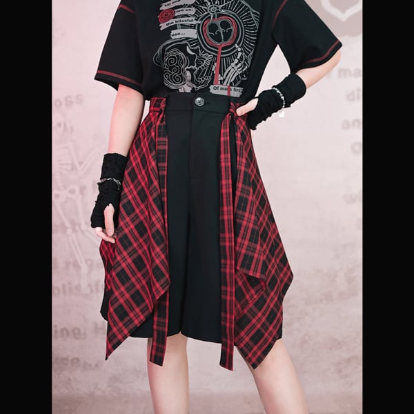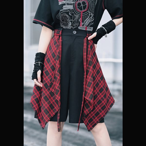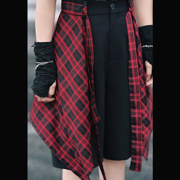 チェックデザイン レイヤードショートパンツ(lli_6871)