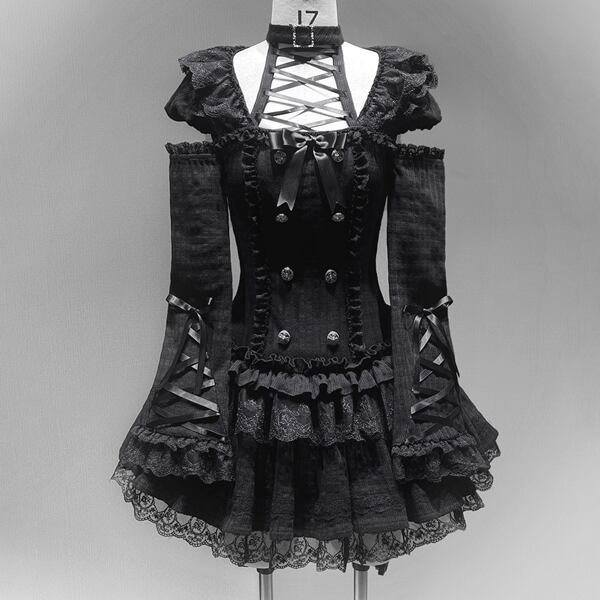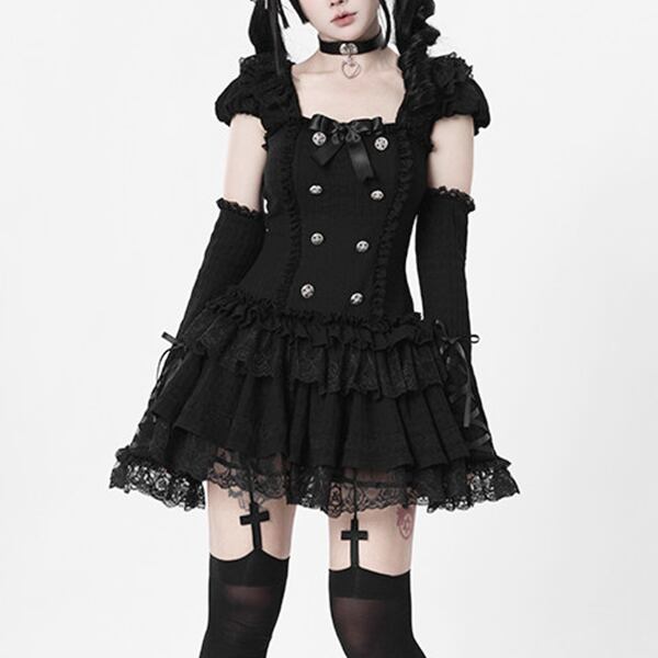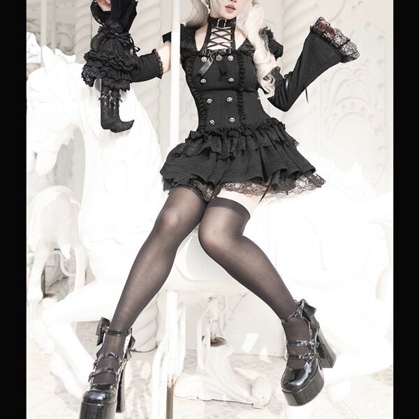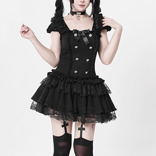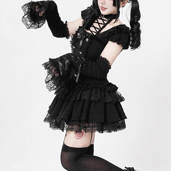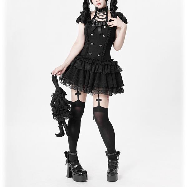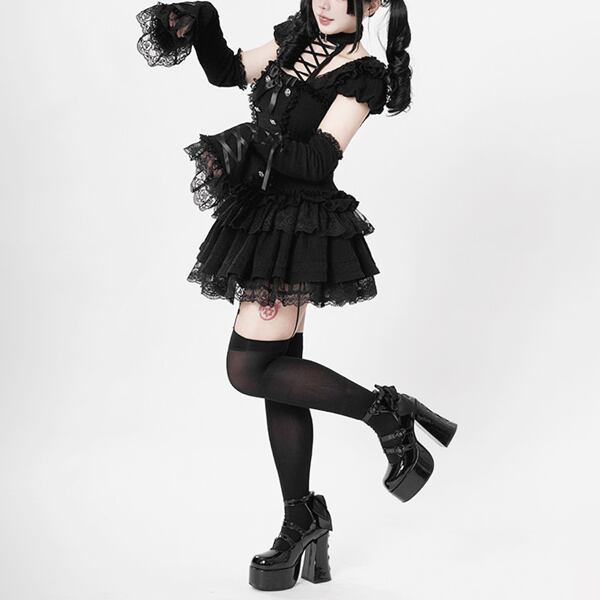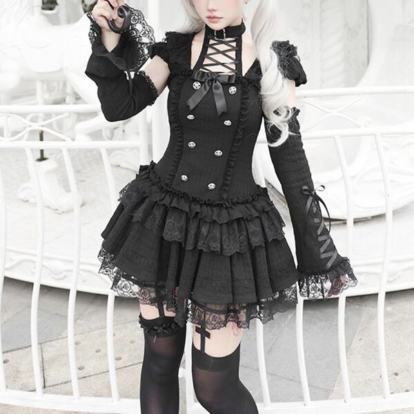 ブラッククロスレース ダークドールゴシックワンピース(lli_6873)