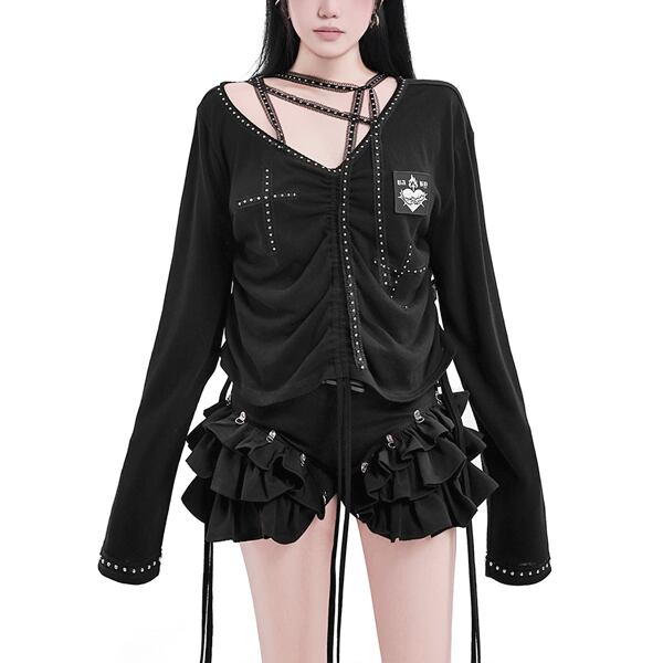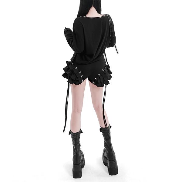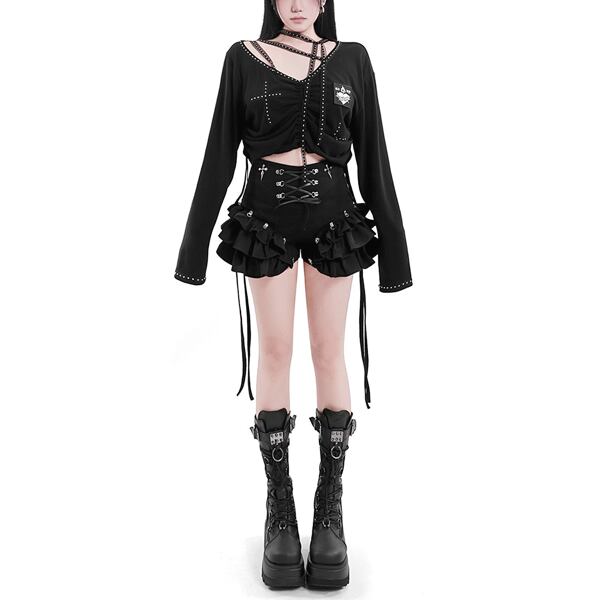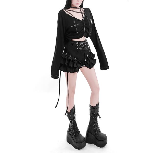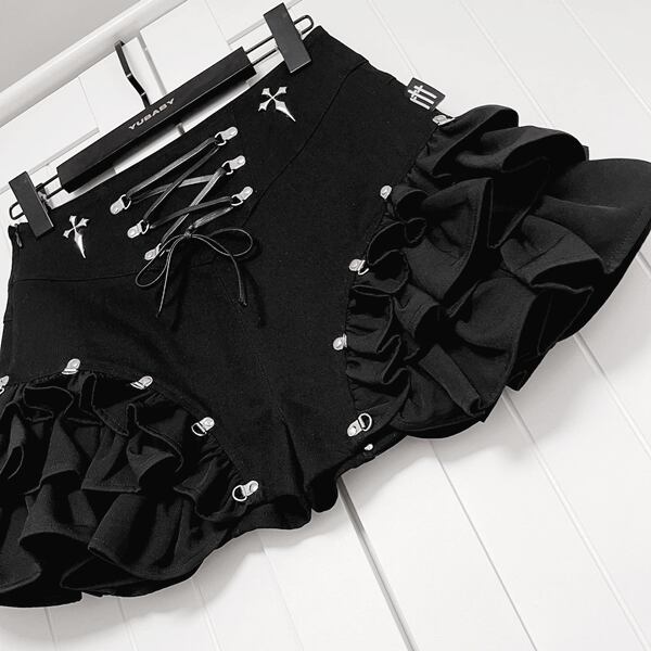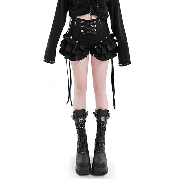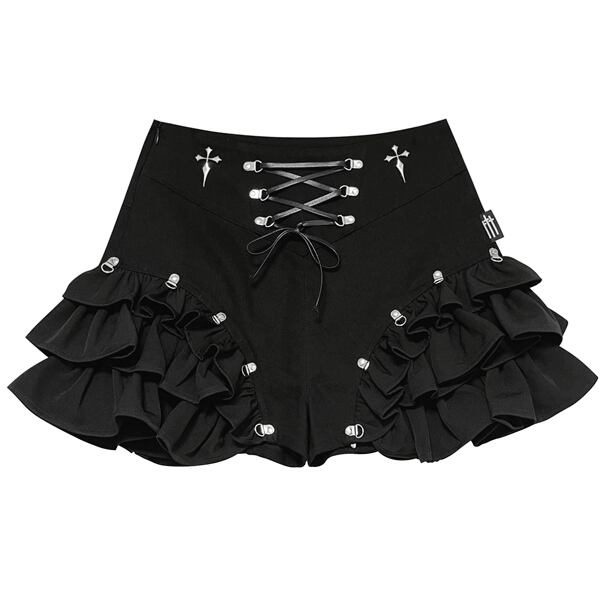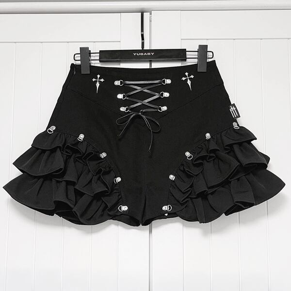 クロスレースアップ フリルボリュームショートパンツ(lli_6877)