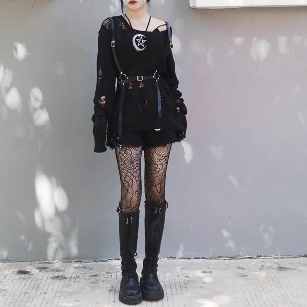 ▼ハーネス付き(ハーネス付きムーンペンタグラムヘビーダメージセーター(lli_929))は以下からご覧ください▼