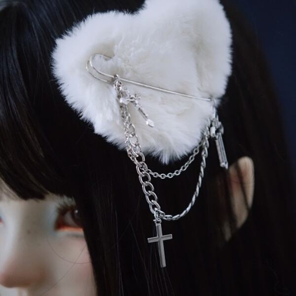 クロスチェーン安ピンホワイトボアハートヘアアクセ(lli_1191)