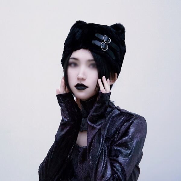 ダブルバックルベルトキャットイアーフェイクファーハット(lli_1202)
