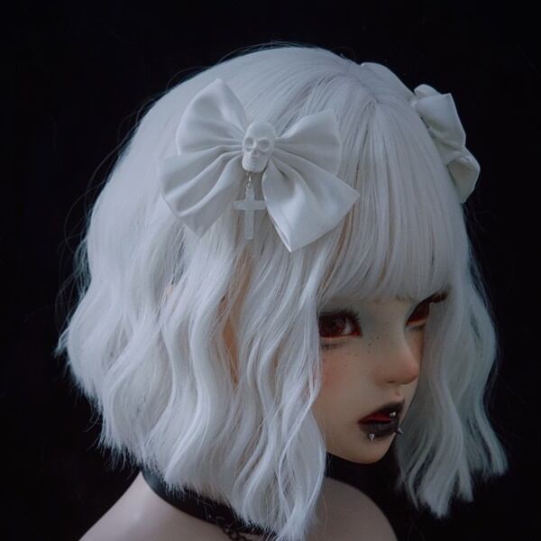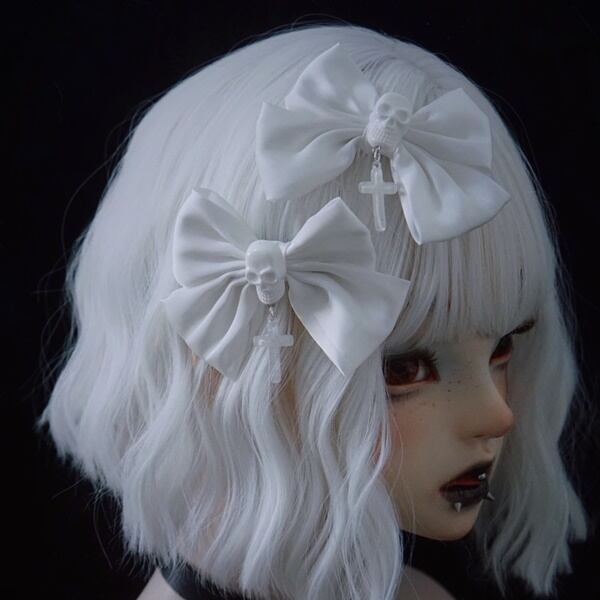 ホワイトスカルクロスリボンヘアアクセ(lli_1228)