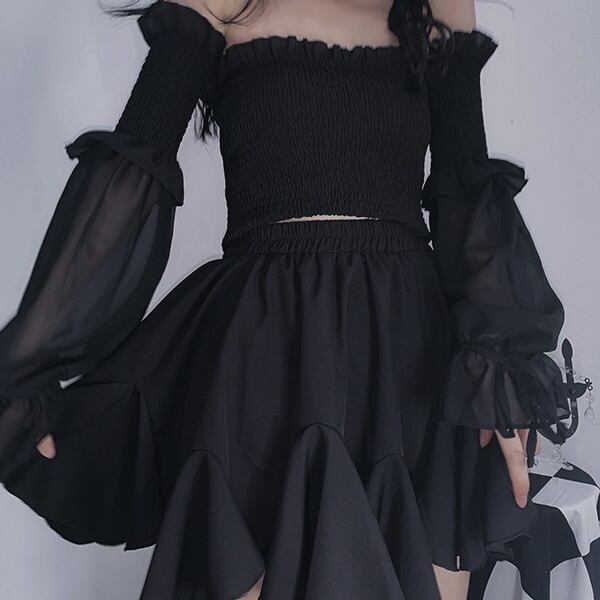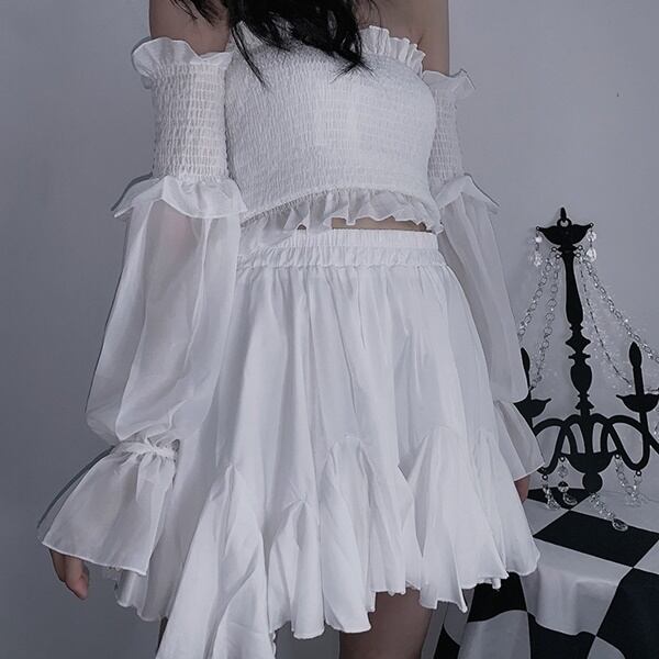 ボリュームスリーブフリルリボンチューブトップ(lli_1403)