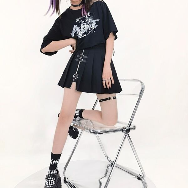 ダブルハートバックルサイドジッパープリーツスカート(lli_1526)
