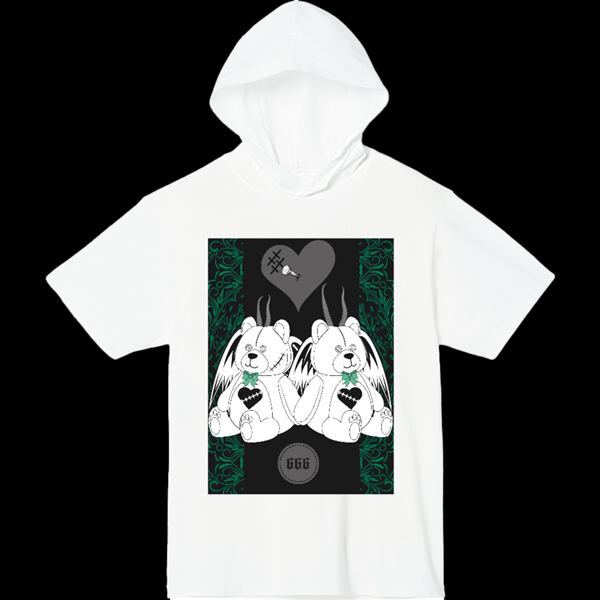 ★【lunalyオリジナル】ツインデビルリボンショートスリーブホワイトフーディTシャツ(ori_0040)