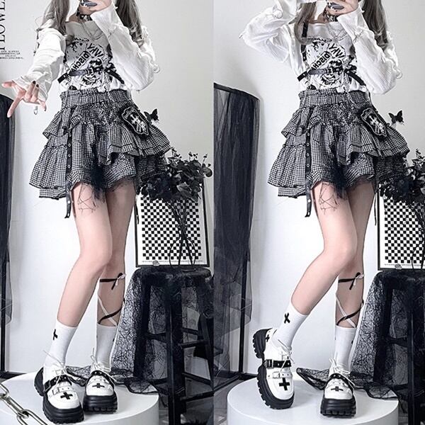 ブラックストラップブラッククロスマークホワイトシューズ(lli_1717)