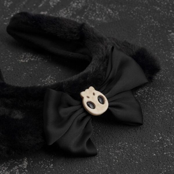 クマ耳もこもこデフォルメスカルブラックリボンカチューシャ(lli_1773)