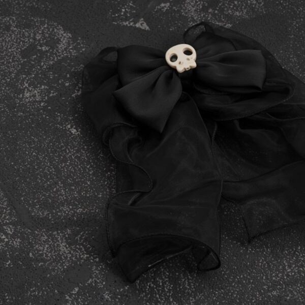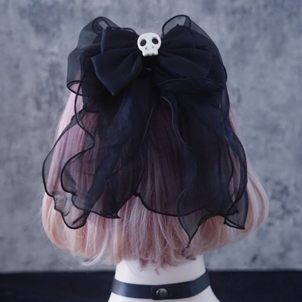 デフォルメスカルブラックリボンフリルヘアアクセ(lli_1774)