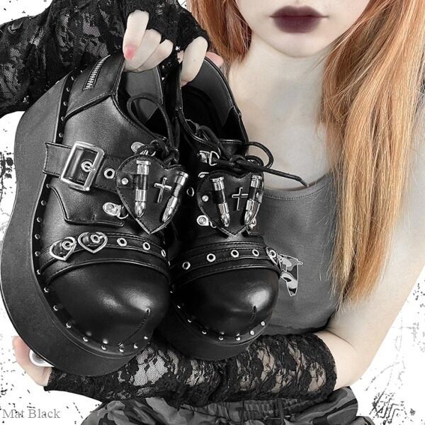 ハートクロスバレットパッチハトメバックルストラップジッパーヒールシューズ(テクスチャで2種類有)(lli_1931)