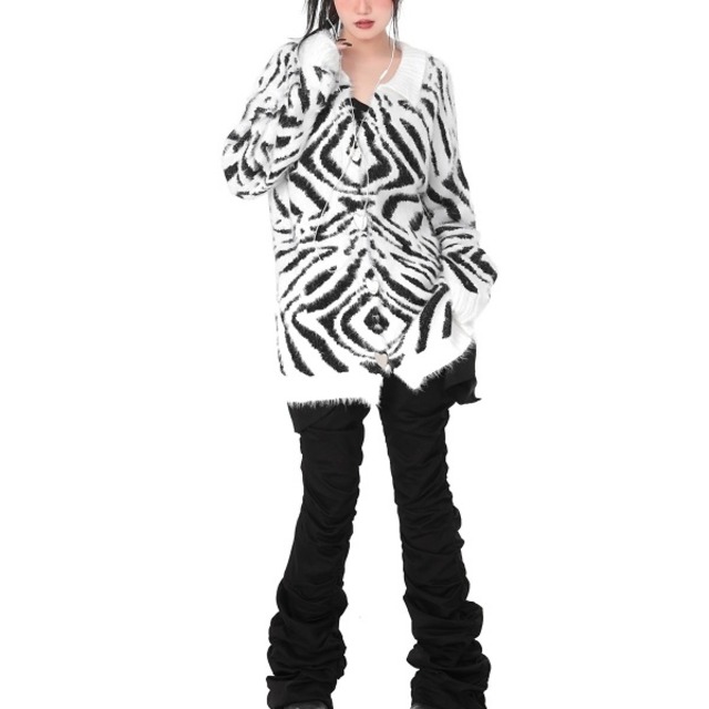 ハートボタンゼブラニットカーディガン(lli_1944)