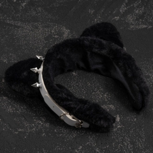 クロスフレームオーナメントホワイトラインスタッズクマ耳もこもこカチューシャ(lli_2002)