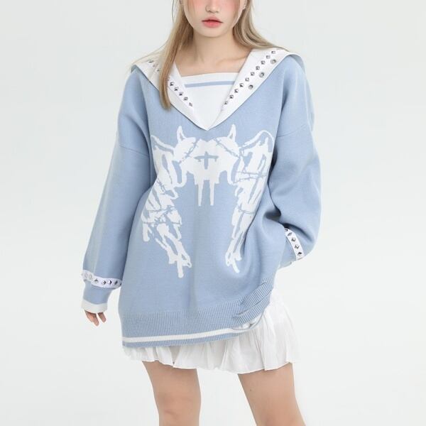 有刺鉄線デビルハートスタッズセーラーニット(lli_2182)