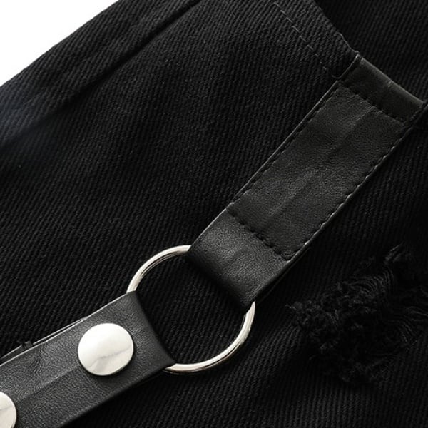 フリンジダメージデニムショートパンツセットアップレッグカバー(ベルトとチェーンも付属します)(lli_2333)