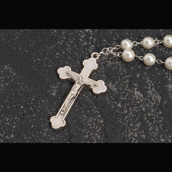 スリーピースホワイトロザリオクレセントチェーンネックレス(lli_2561)