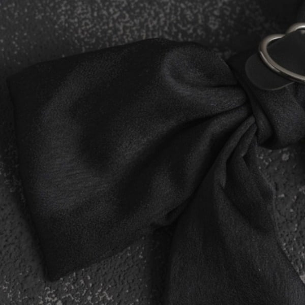 ハートバックル安ピンブラックロングリボンヘアアクセ(lli_2591)
