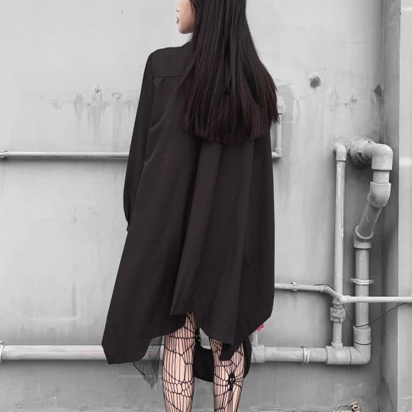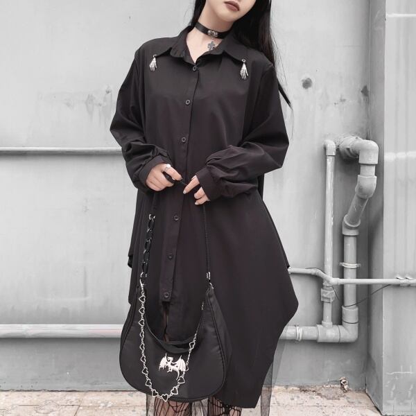スケルトンハンドカラーレースエッジレイヤードブラックデザインシャツ(lli_2677)