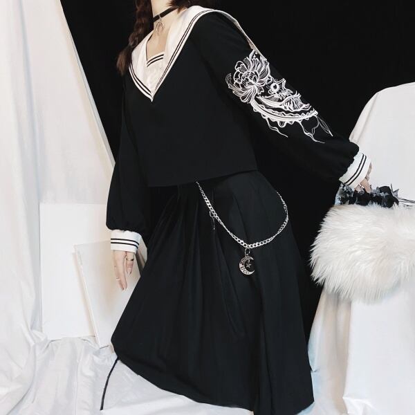 ウィッチムーンモンスター刺繍セーラートップス(lli_2681)