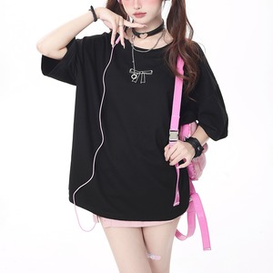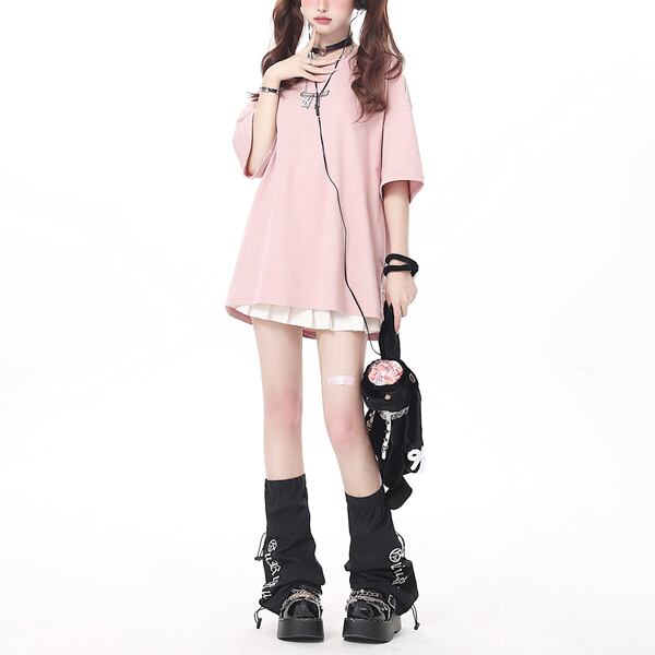バックリボンコードフロントリボンイラストショートスリーブカットソー(4色リボンセット)(lli_2736)