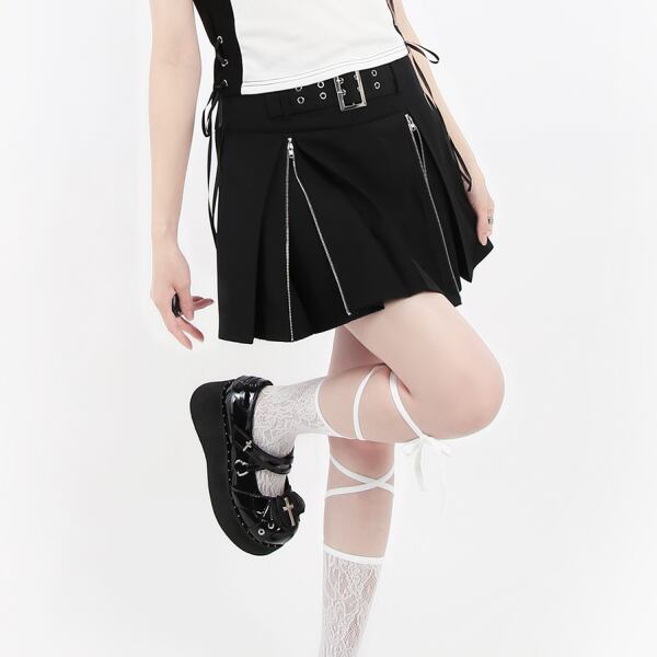 ウエストハトメベルトスリットジッパープリーツスカート(lli_2948)