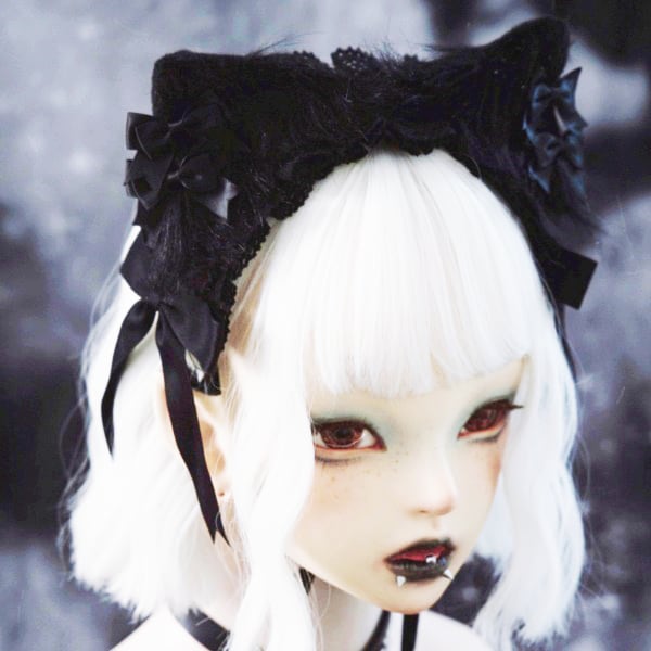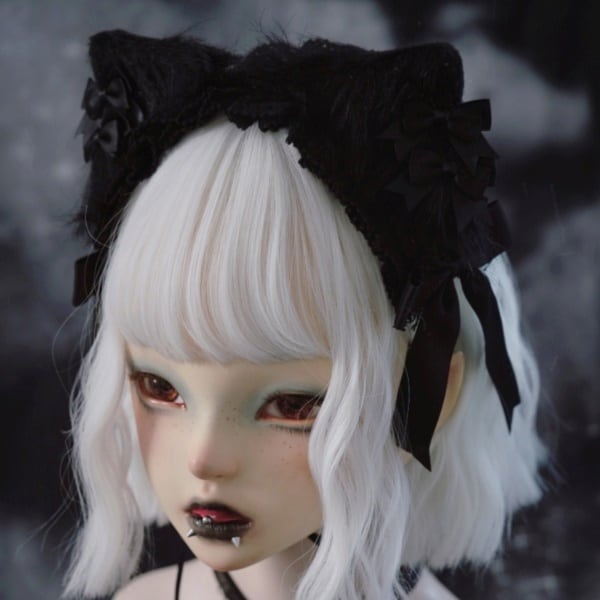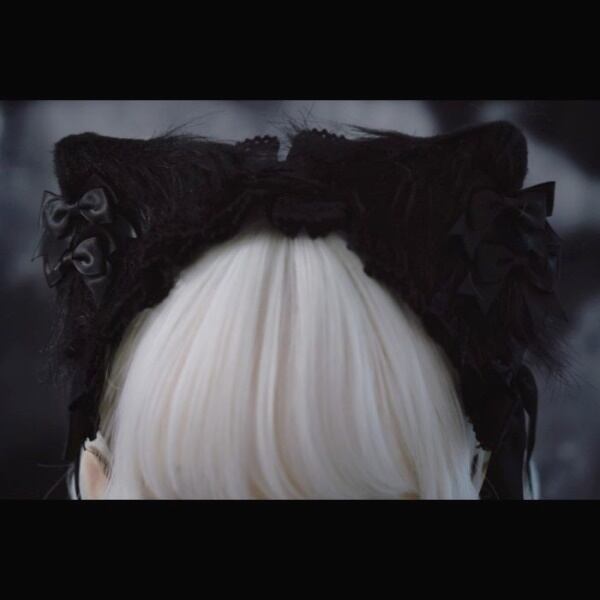 ダブルスモールブラックリボンオーナメントブラックキャットイヤーヘッドドレスヘアアクセ(lli_3057)