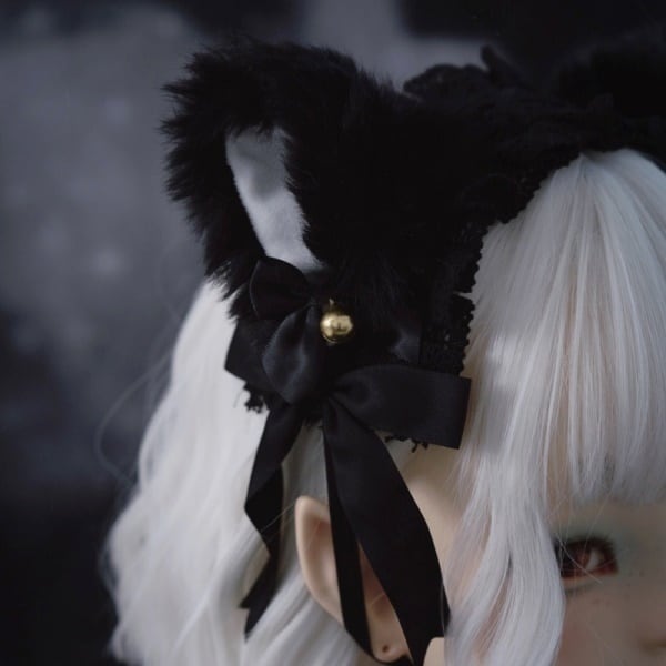 ブラックリボンフォックスイヤーヘッドドレスヘアアクセ(lli_3058)