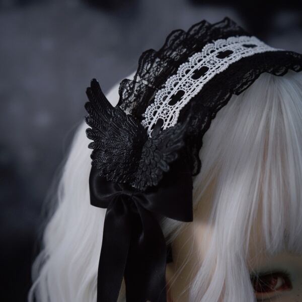 ブラックエンジェルウイングリボンヘッドドレスカチューシャ(lli_3059)