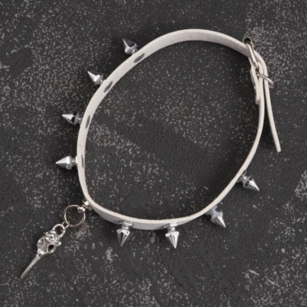 レイブンスカルスタッズホワイトパンクチョーカー(lli_3103)