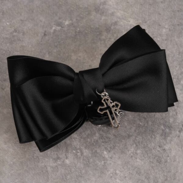 バックルベルトチェーンクロスフレームブラックリボンヘアクリップ(lli_3698)