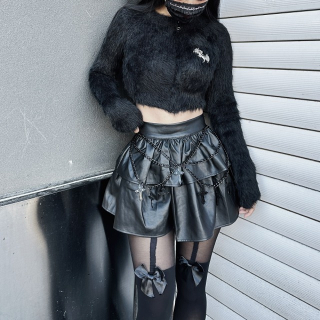 ブラックロザリオチェーンティアードPUスカート(lli_3739)