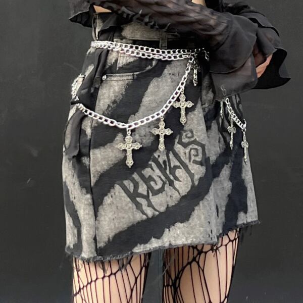 グランジグラデーションボーダーチェーン付きパンクスカート(lli_3962)