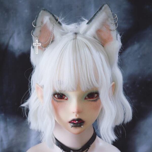 ロザリオチェーンアクセホワイトブラック猫耳カチューシャ(lli_3980)