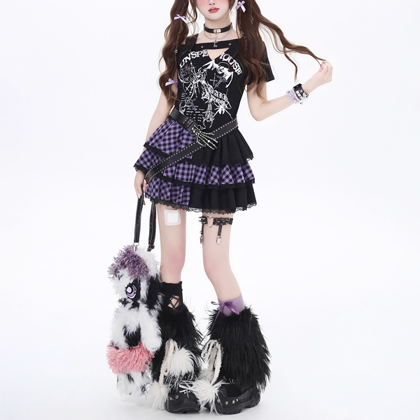 ▼ブラックパープルスカート(ブラックパープルチェックバイカラーティアードスカート(lli_4630))は以下からご覧ください▼