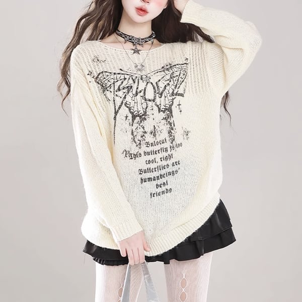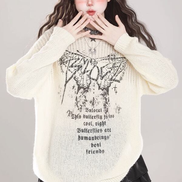 ブラックバタフライグラフィックロゴアプリコットニット(lli_5119)