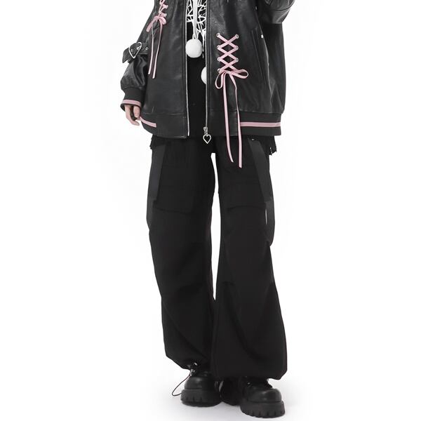 ハートバックルウエストベルトブラックパンツ(lli_5207)