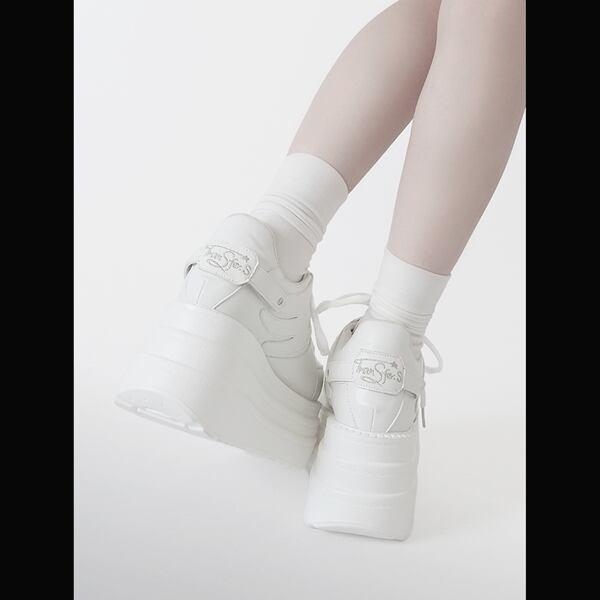 厚底2タイプレースアップホワイトシューズ(靴紐が2タイプ付属します)(lli_5231)