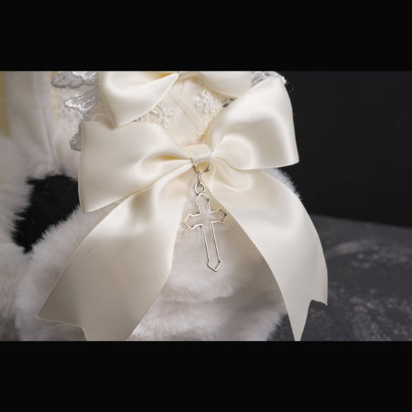 ホワイトフリルダブルリボンクロスヘッドドレスもこもこイヤーマフ(lli_5351)